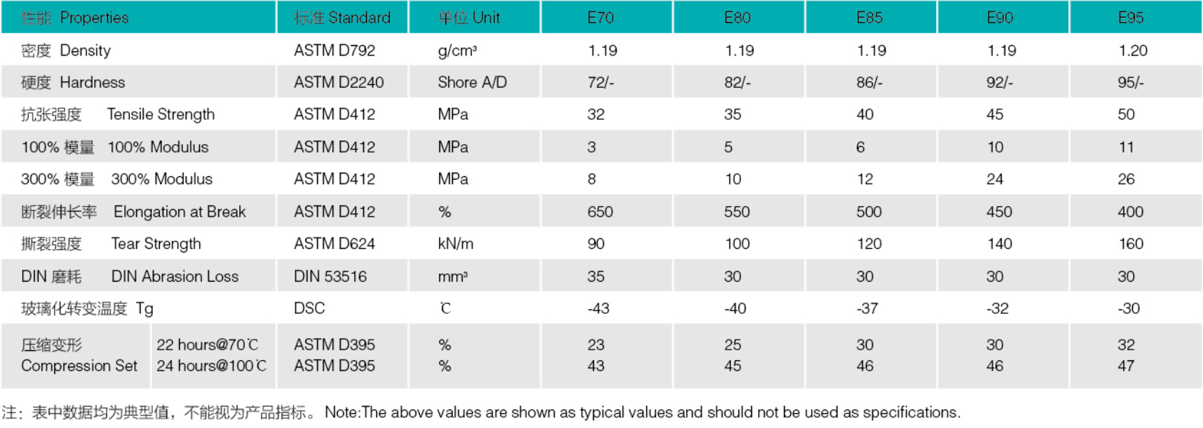 性能特性:优异的耐水解性、抗压缩变形性、耐油性、耐溶剂性、耐磨性、高回弹性